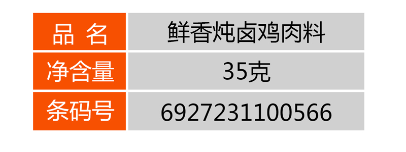 鲜香炖卤鸡肉料 首页 > 产品展示 > 炖料系列 > 鲜香炖卤鸡肉料